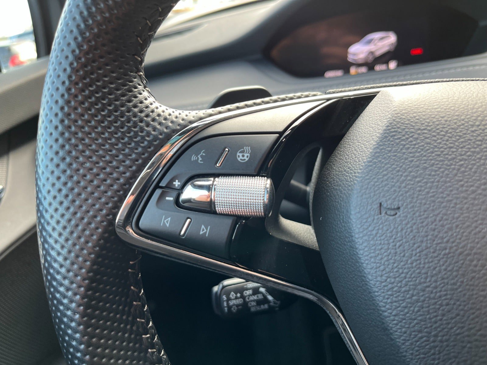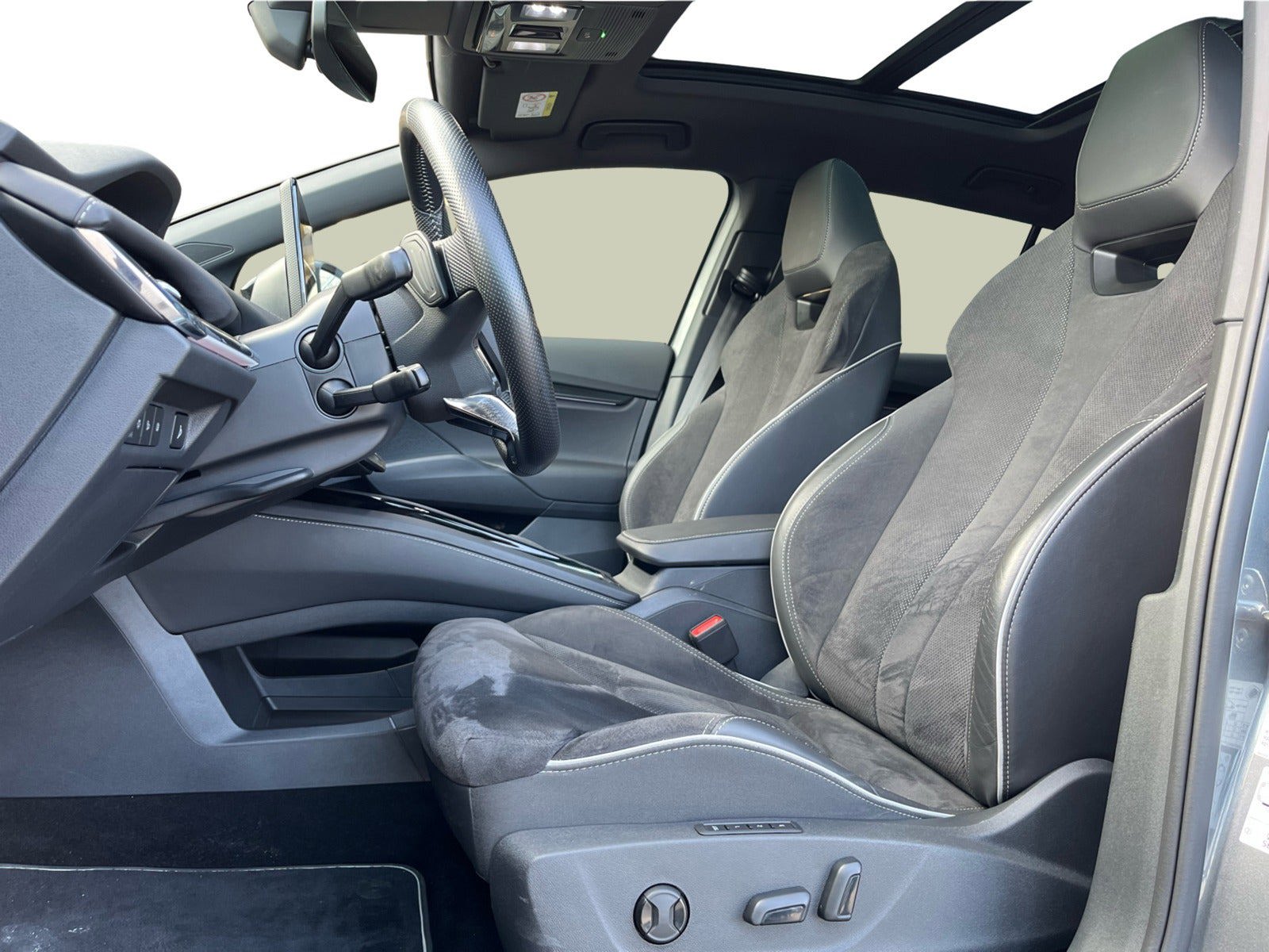 sportssæder, splitbagsæde, mørk loftbeklædning, ambiente belysning, el-klapbare sidespejle m/varme, mørktonede ruder i bag, områdebelysning, fjernb. centrallås, aut. nedbl. bakspejl, sædevarme, udv. temp. måler, 4x el-ruder, trådløs mobilopladning, dab+ radio, håndfrit til mobil, usb-c tilslutning, parkeringssensor (for og bag), dæktryksmåler, isofix